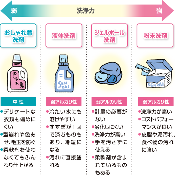 洗浄力は劣りますが、衣服への負担が少なくデリケートな素材にも使用できます。