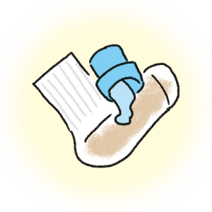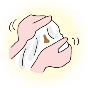 約40℃のお湯に浸けて汚れを浮かせた後、食器用洗剤をつけて揉み洗いをし、洗い流します。