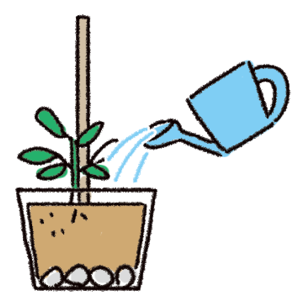 鉢底から水が流れるくらいまでたっぷり水を与える。
