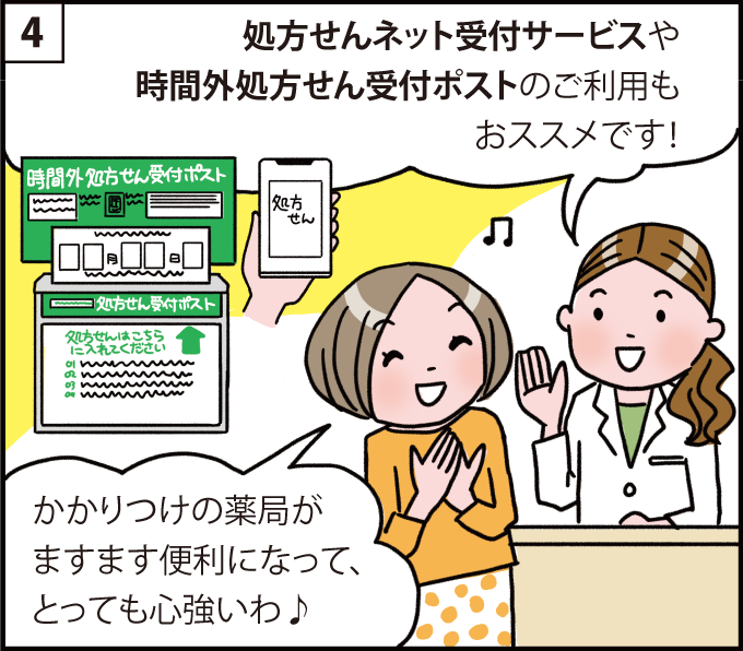 おくすり受け取りロッカー・時間外処方せん受付ポストの設置がない店舗もございます。