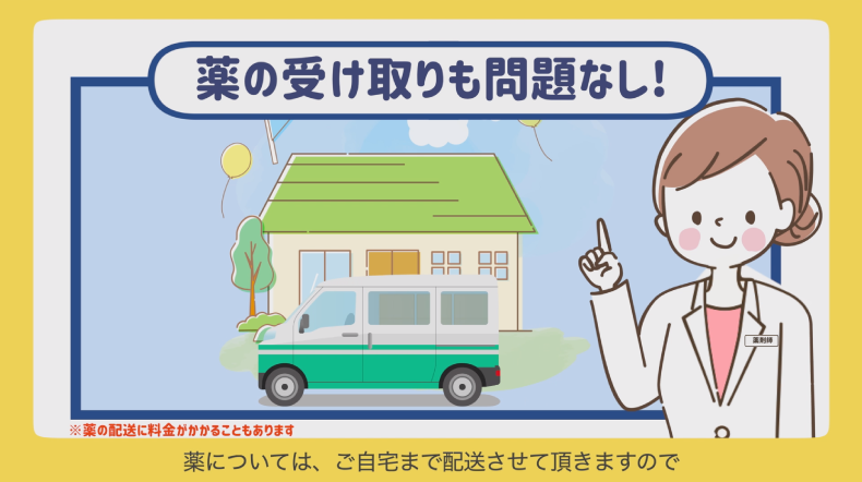 ※パソコンやスマートフォン等を用いたビデオ通話にて薬剤師からお薬の説明を受けてご自宅でお薬を受け取ることができます。