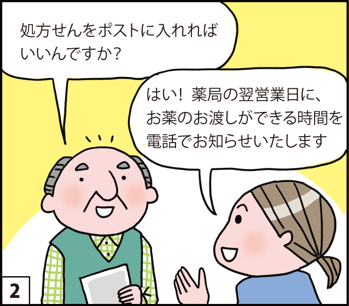 お薬のお渡しには、直接ご来店もしくはオンラインにて、服薬指導をお受けいただく必要がございます。
