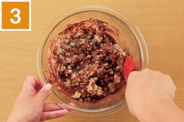 1のボウルに、2とフルーツグラノーラを加え、ゴムベラでさっくりと混ぜ合わせる。 |