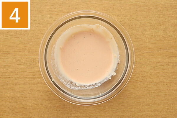 ボウルにドレッシングの材料を入れて、よく混ぜ合わせる。