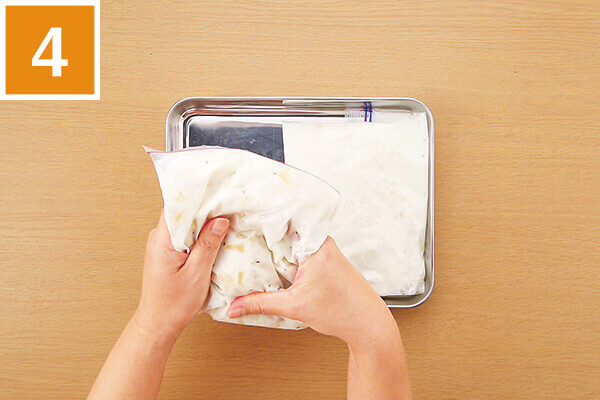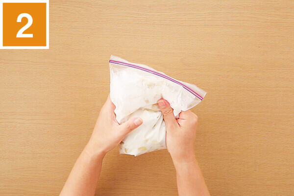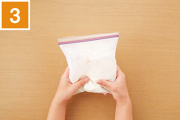 2・3を冷凍庫に入れて3時間ほど冷やす。 1時間ごとに取り出して、揉みほぐす作業を繰り返しましょう。 |