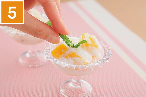 器に2種類のシャーベットを盛り、お好みでミントを飾って完成! |