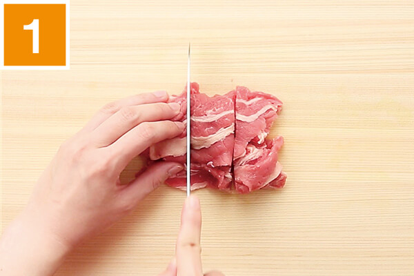 牛ばら肉は一口大に、しょうが・大葉は千切りにする。