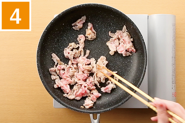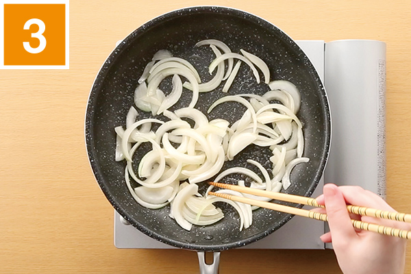 1を炒める。火が通ったら3をフライパンに戻し、1~2分炒める。お好みで塩・こしょうで味を調える。