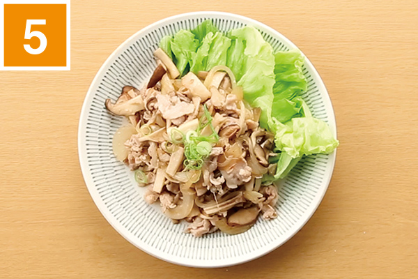 お好みで皿にレタスを敷き、4を盛りつける。刻みねぎを散らしたら完成!