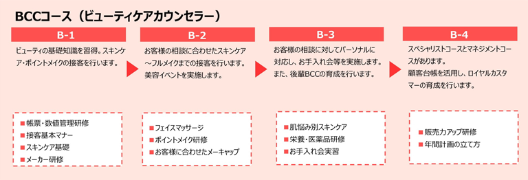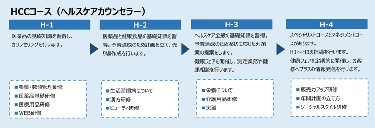当社では、社員のキャリア形成を実現する為の教育制度として、「ステップアップ制度」を導入しています。お客様・患者様から信頼されるスタッフを育成し、地域貢献を実現する事を目的としています。