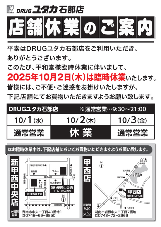 ishibe_close | ドラッグユタカ|株式会社ユタカファーマシー