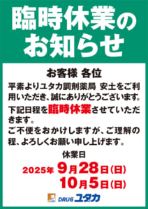 aduchi_close | ドラッグユタカ|株式会社ユタカファーマシー