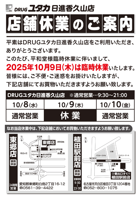 ドラッグユタカ 日進香久山店のチラシ・特売情報
